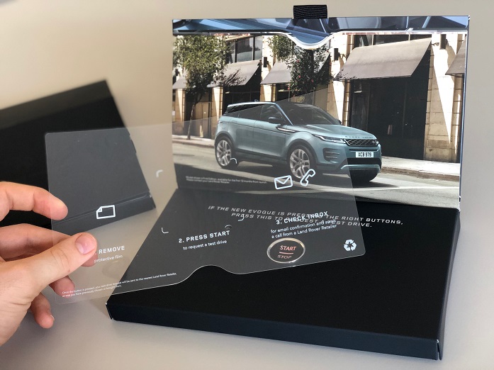 Jaguar Land Rover created a highly personalised mailing that used a replica of the Evoque's stop-start button that put this highly targeted audience in the driving seat: by simply pushing the pulsating button, drivers could book a test drive in an instant. The button triggered an instant email and text message confirmation. All this happened in real time in a GDPR-compliant manner that required no customer sign-up, pre-interaction or Bluetooth, tethering, or Wi-Fi connection.